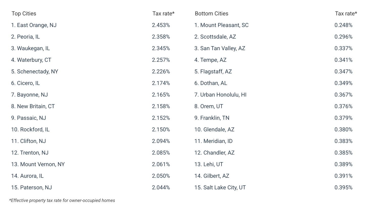 Cities With the Highest and Lowest Property Taxes